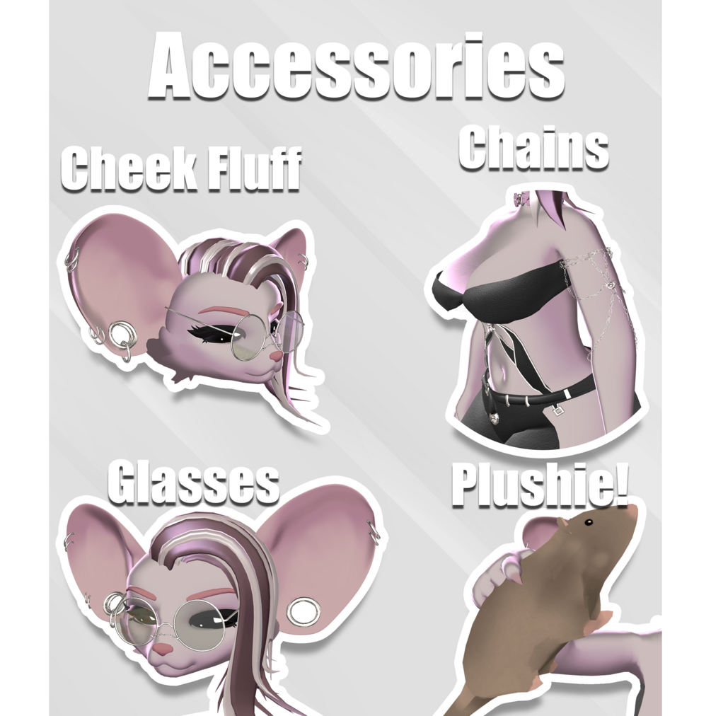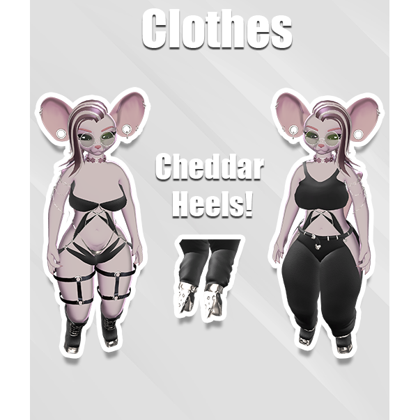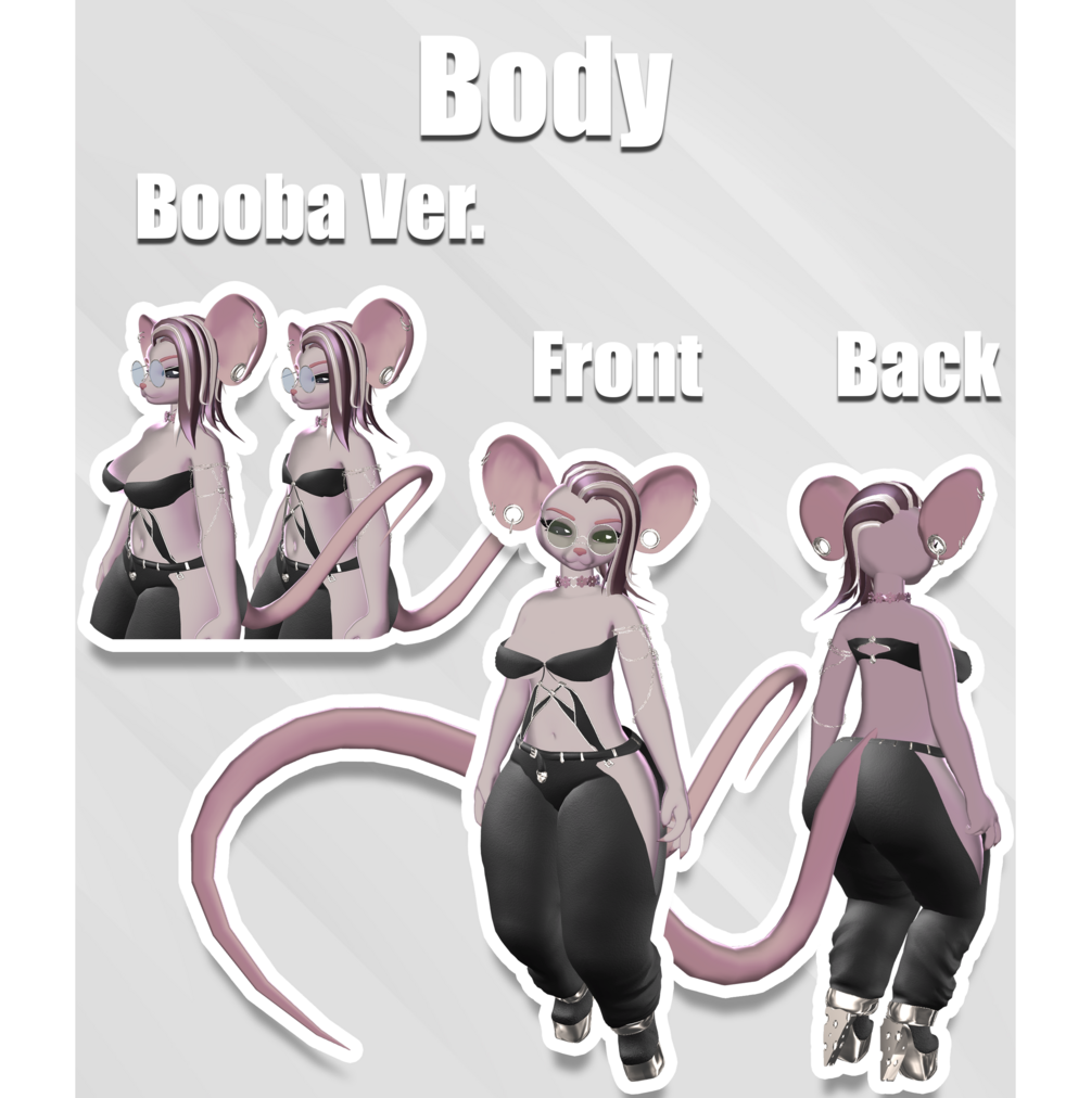 Including a hair swap, super cute ears, a top, pants, boots with cheddar heels, chains for the arms, flower collar, glasses, booba toggle for femboys and face a cute little rodent plushie, and GoGo Loco preinstalled!